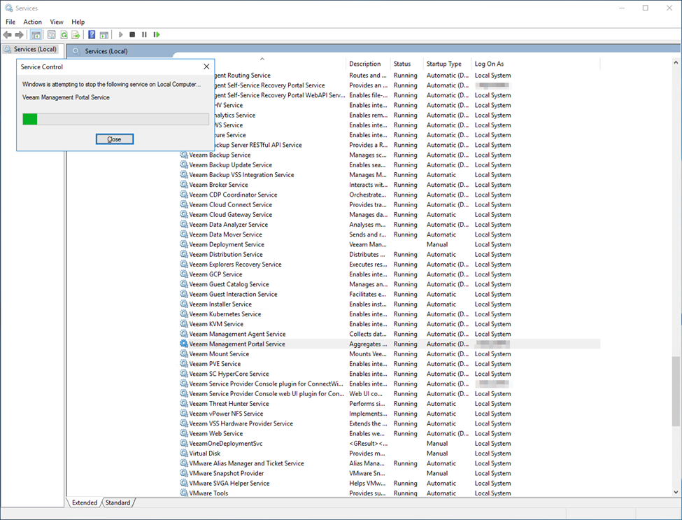 Next up, mosey on over your SPC and restart the “Veeam Management Portal Service” service force it to reload the database.